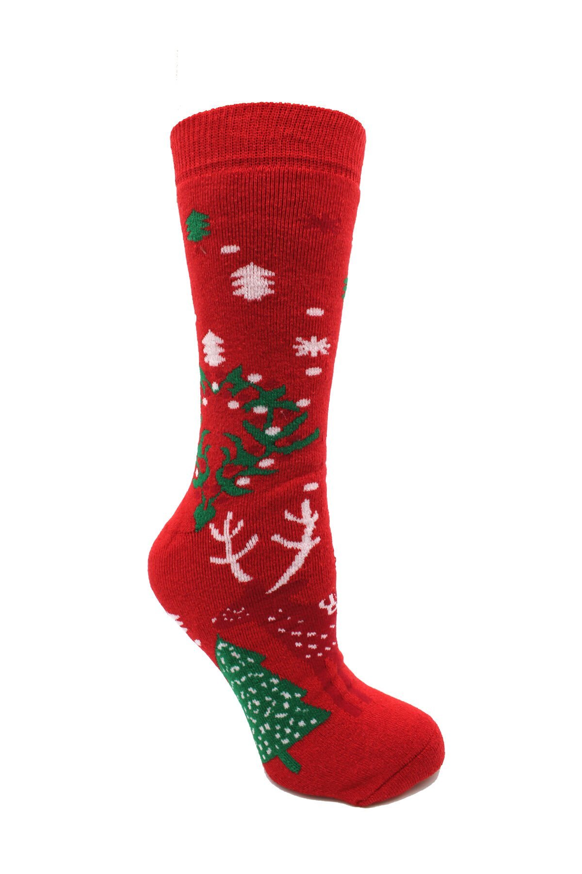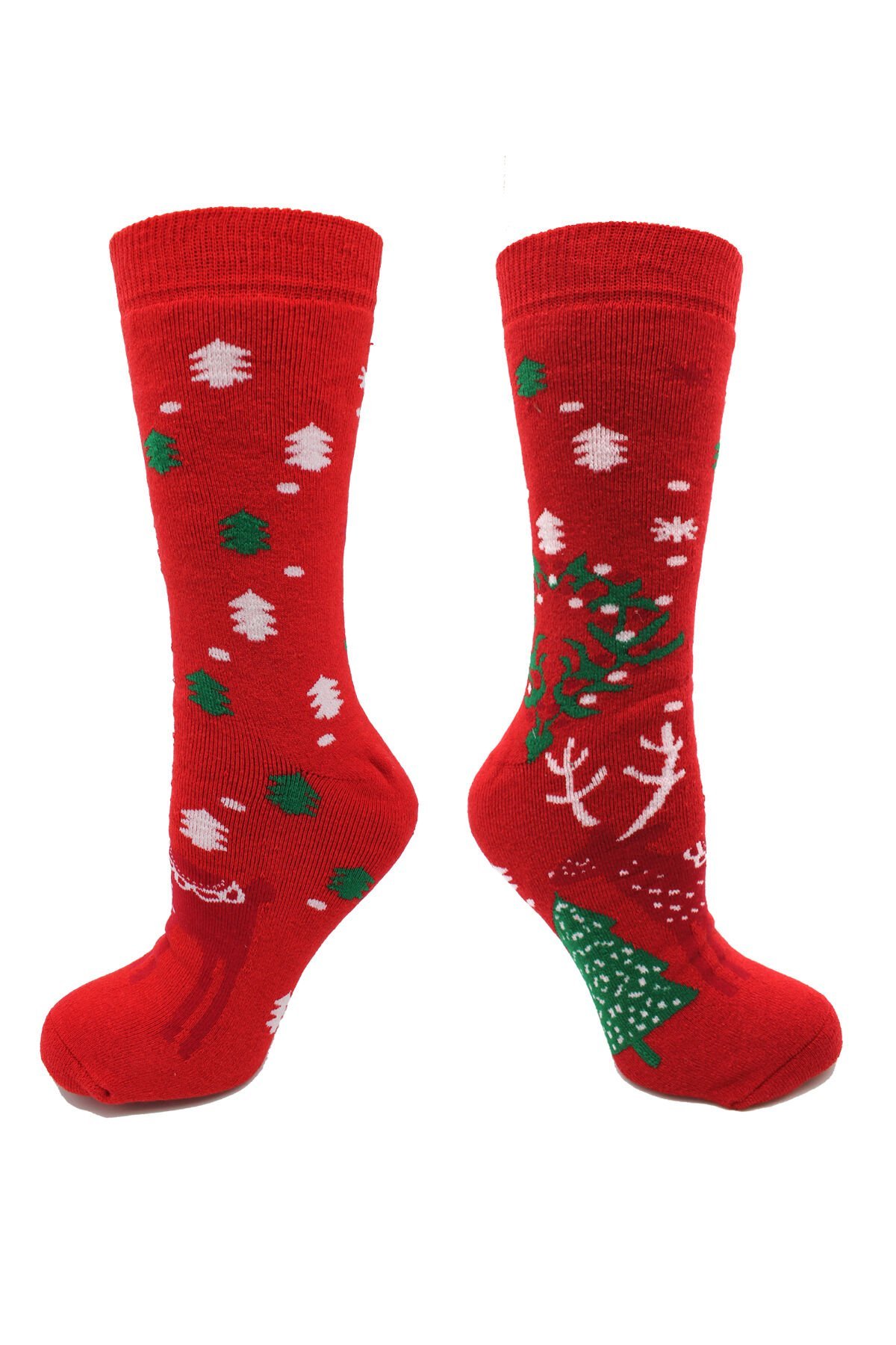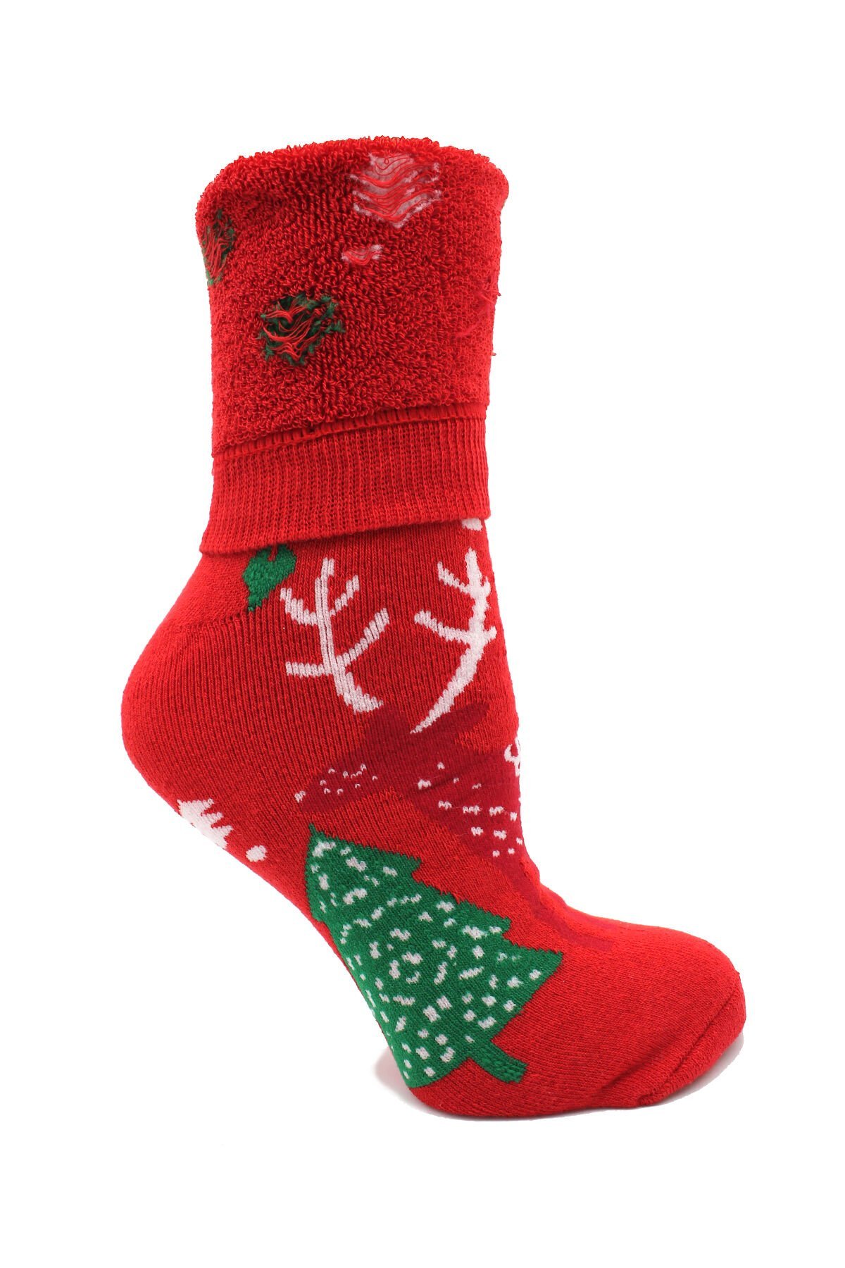 Geyik Desenli Kalın Kışlık Kırmızı Havlu Yılbaşı Çorabı