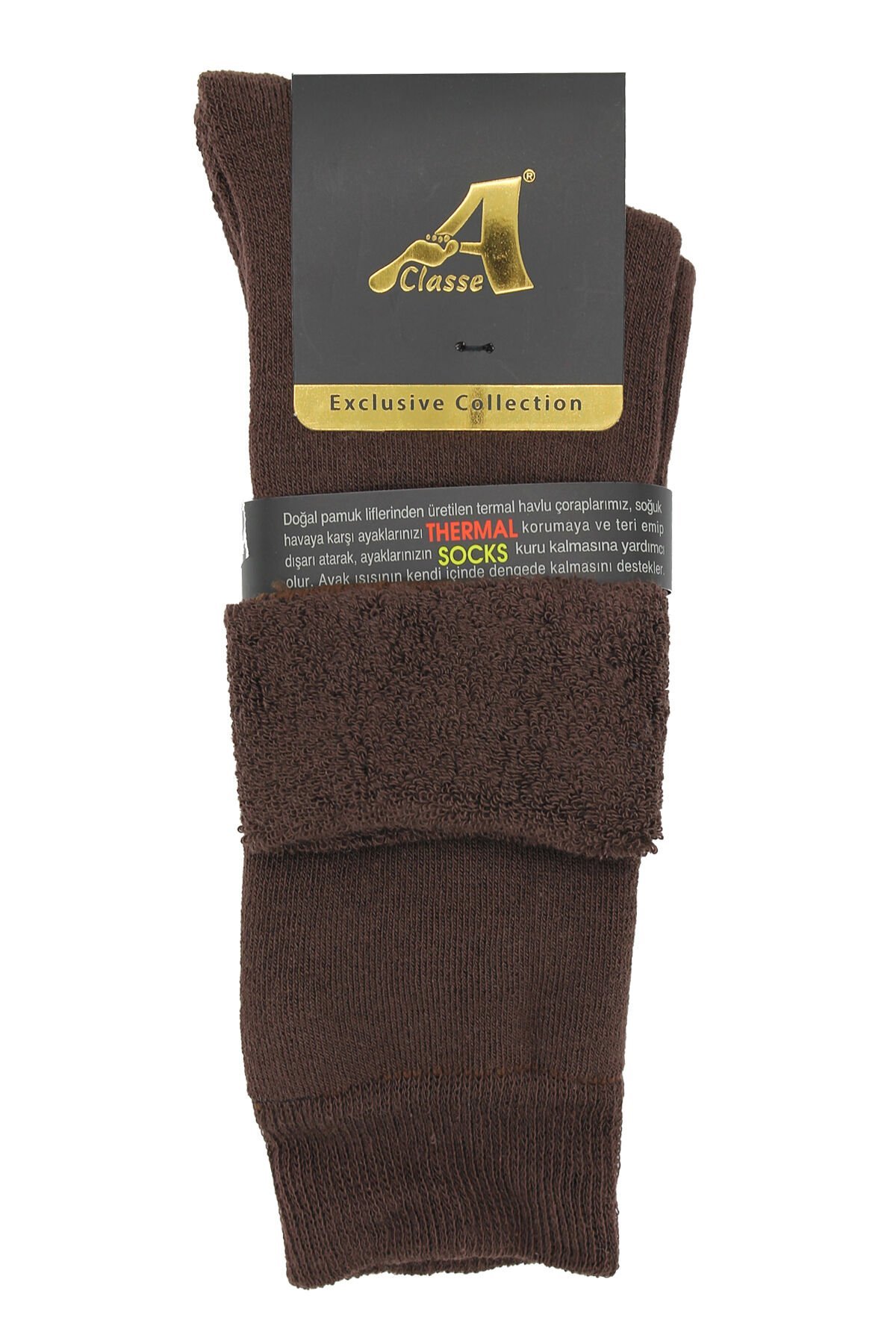 A CLASSE Kahverengi Termal/Thermal Kıvrık Havlu Kalın Kışlık Kadın Çorap