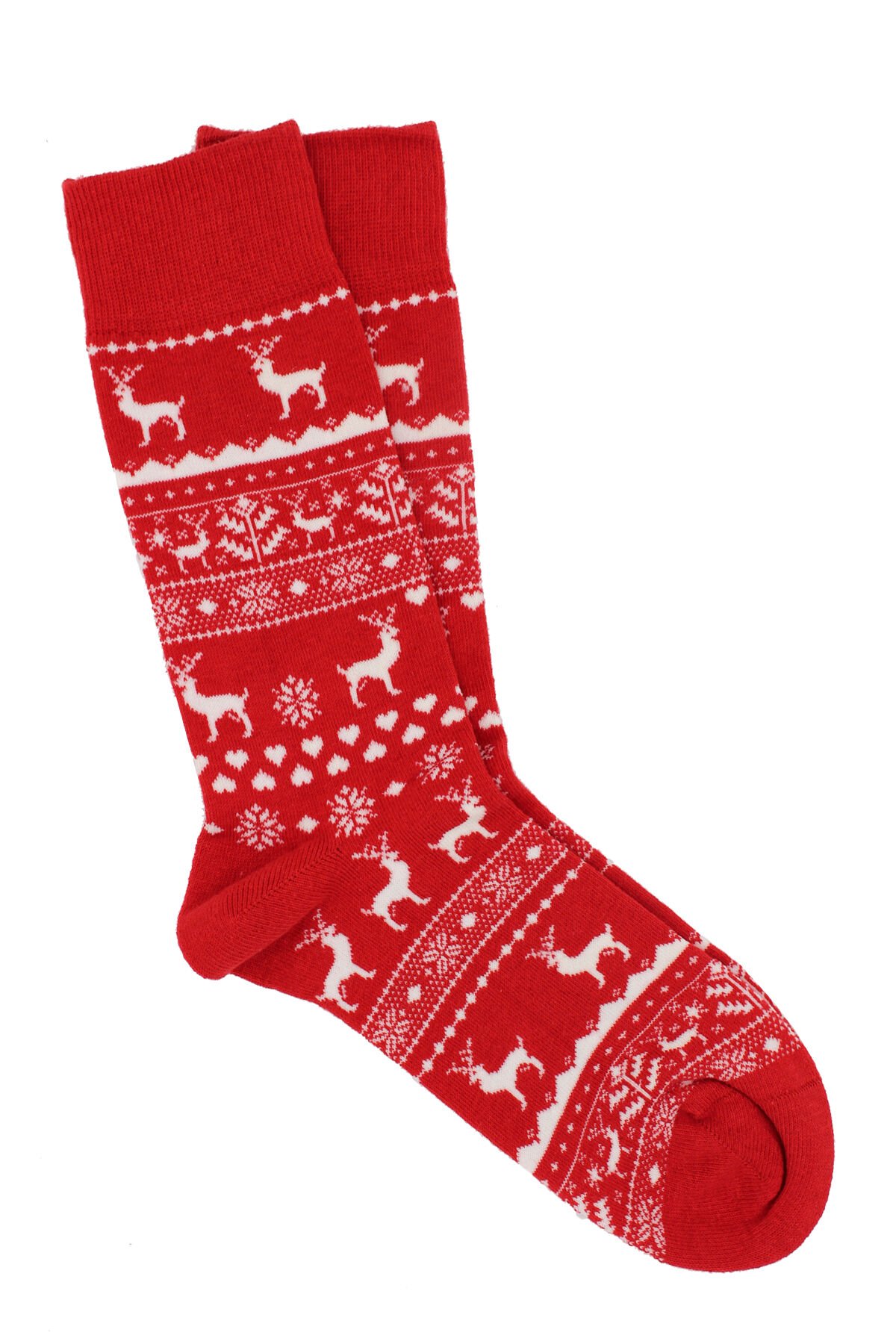 A CLASSE Geyik Desenli Kırmızı Yılbaşı Çorabı