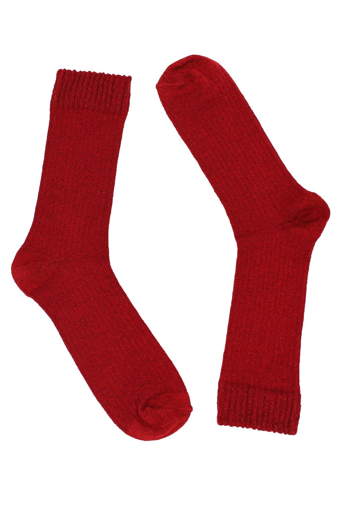 Kırmızı Simli Bot Tipi Kadın Çorap
