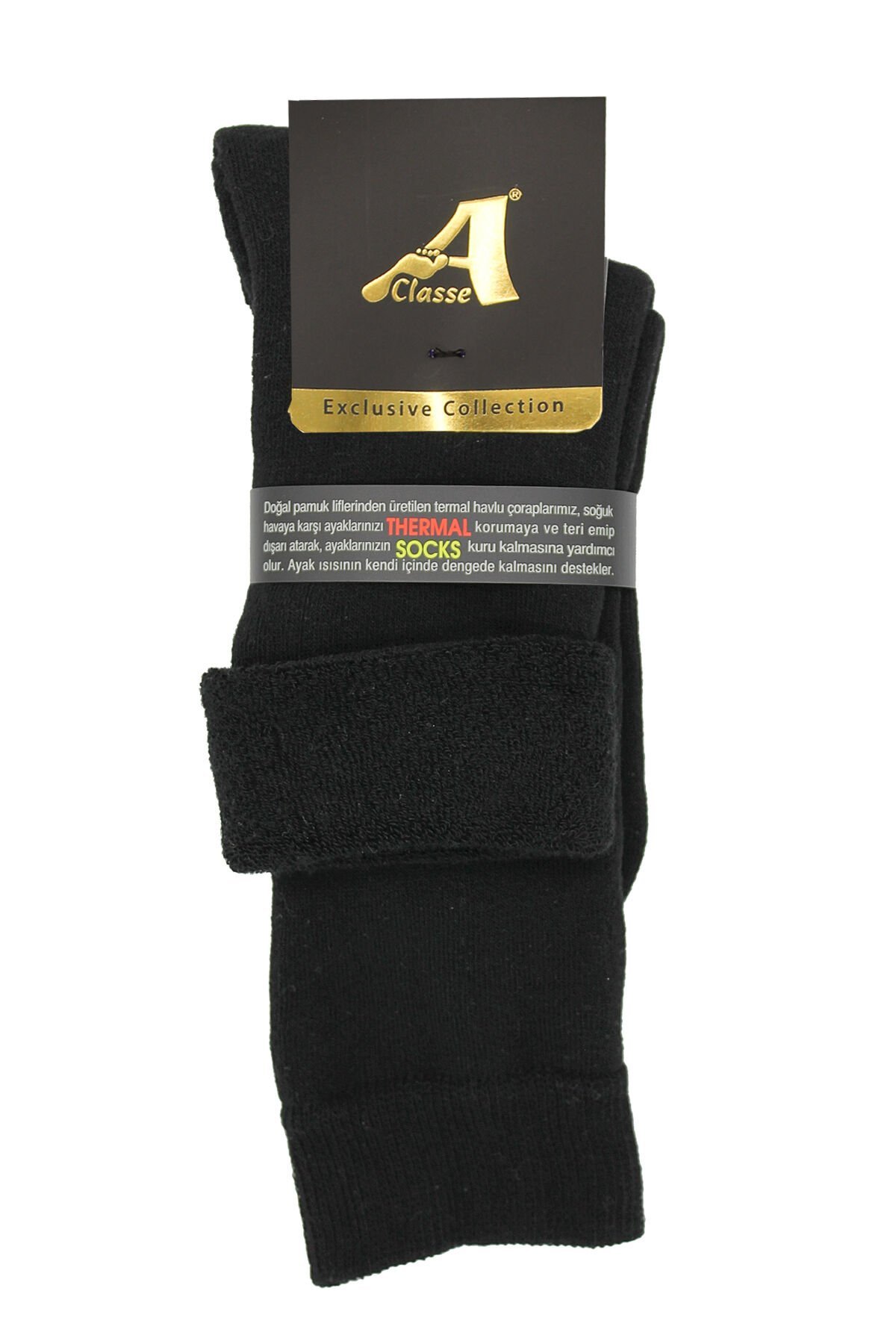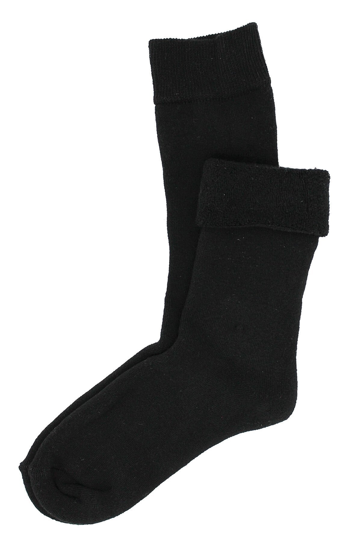 A CLASSE Siyah Termal/Thermal Kıvrık Havlu Kalın Kışlık Kadın Çorap
