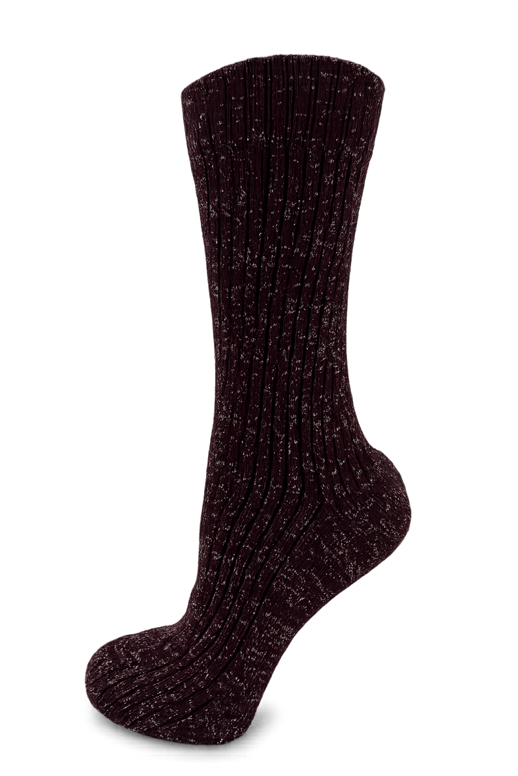 Bordo - Gümüş Simli Bot Tipi Kadın Çorap
