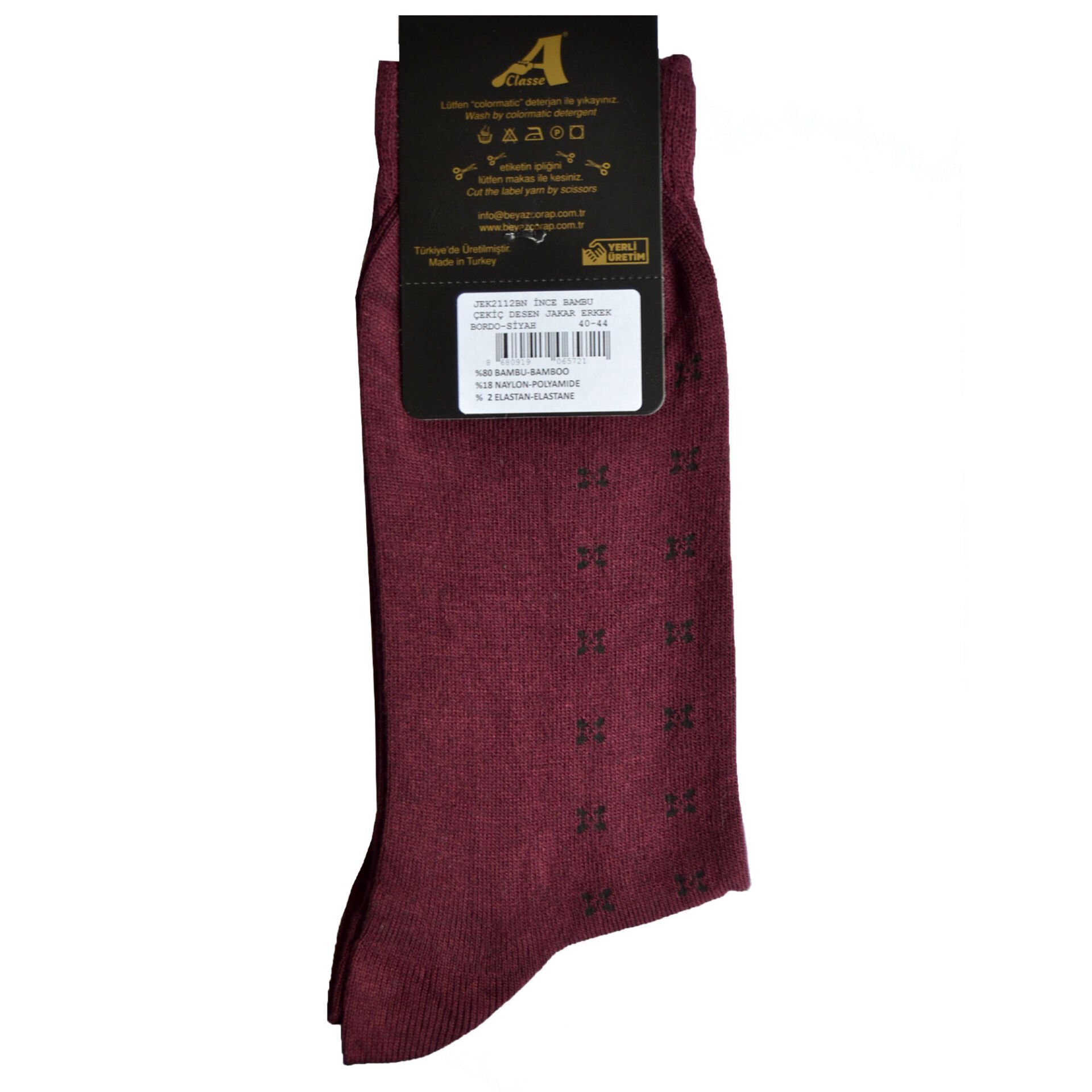 İnce Bambu Çiçek Desenli Bordo Erkek Çorap